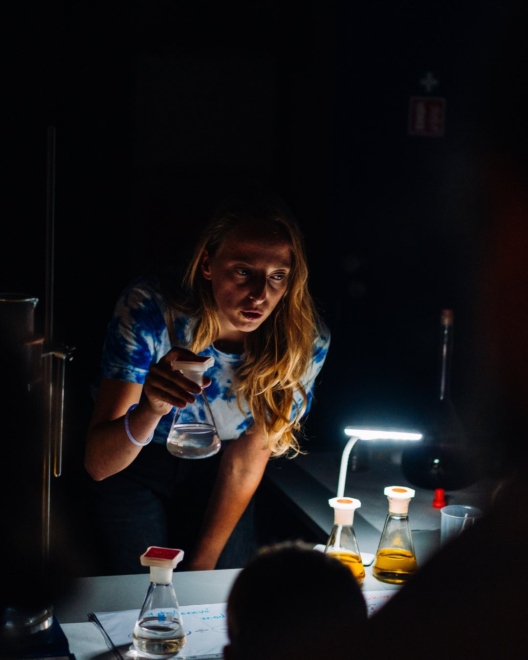 Staňte se chemiky na jeden večer a odhalte tajemství, která obvykle zůstávají skryta. Naučíme vás tvořit nové látky, odhalovat neznámé prvky a nahlédnout do světa neviditelných částic. Ukážeme vám zlato v několika podobách. Neodnesete si ho domů, ale získáte bohatství cennější než drahé kovy: znalosti, které rozšíří vaše obzory.