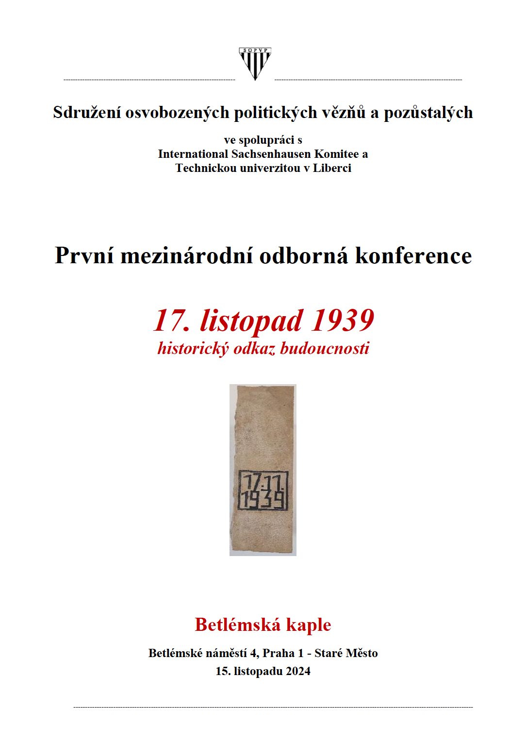 Mezinárodní konference „17. listopad 1939 - historický odkaz budoucnosti“, se uskuteční v pátek 15. listopadu 2024 v historických prostorách Betlémské kaple v Praze. Vedle odborných příspěvků na konferenci vystoupí rovněž studentský pěvecký sbor Bohemia Chór FP TU Liberec. Sbor pod vedením dr. Konvalinkové přednese mimo jiné i symbolickou píseň Moorssoldaten, která se zpívá na závěr všech pietních shromáždění u „Stanice Z“ v KT Sachsenhausen.
