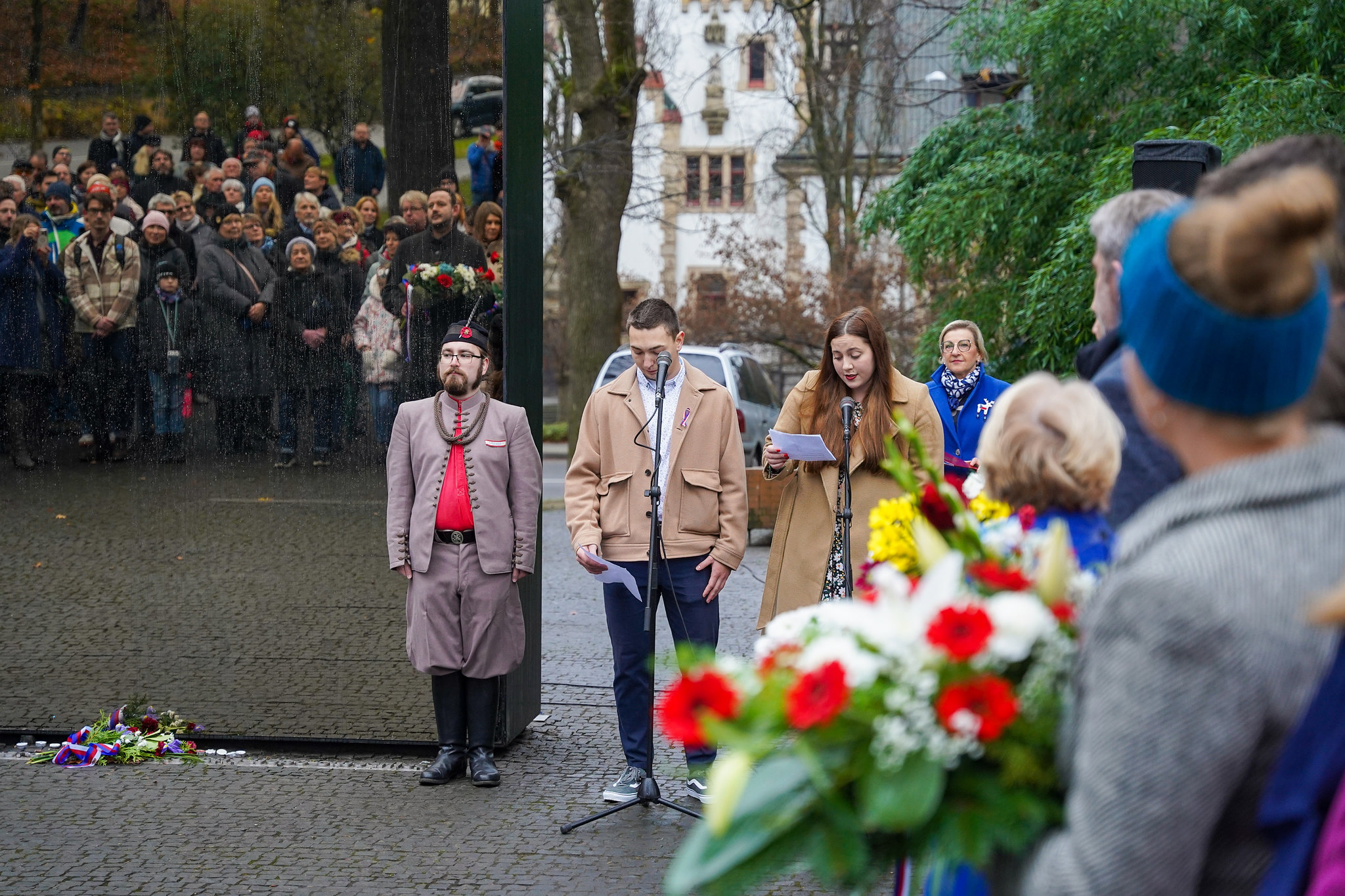 Chybět nemohl ani univerzitní pěvecký sbor Bohemia Chór vedený Janou Konvalinkovou z katedry primární a preprimární pedagogiky (KPV) a Christopherem Muffettem z katedry anglického jazyka (KAJ). Svým zpěvem Bohemia Chór připomněl oběti studentů roku 1939, na perzekuci i oběti komunistického režimu i na události roku 1989. „Naše studentky a studenti tu chvíli opravdu prožívali a i přes nepřízeň počasí s radostí a opravdovou hrdostí uctili paměť národa,“ uvedla Jana Konvalinková. „Važme si studujících a jejich činů a postojů, které vykazují i nad rámec běžné výuky.“
