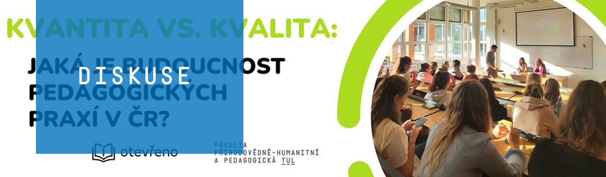 Zveme vás na panelovou diskuzi o pedagogických praxích! Vůbec první akce hnutí Otevřeno na liberecké univerzitě se uskuteční ve středu 19. října 2022 od 17 hodin v posluchárně P100 (Komenského 314/2, Liberec) i díky významné podpoře FP TUL. V diskuzi se zaměříme na aktuální podobu pedagogických praxí, a hlavně pak na změny, které se v blízké budoucnosti v návaznosti na Reformu přípravy učitelů uskuteční.