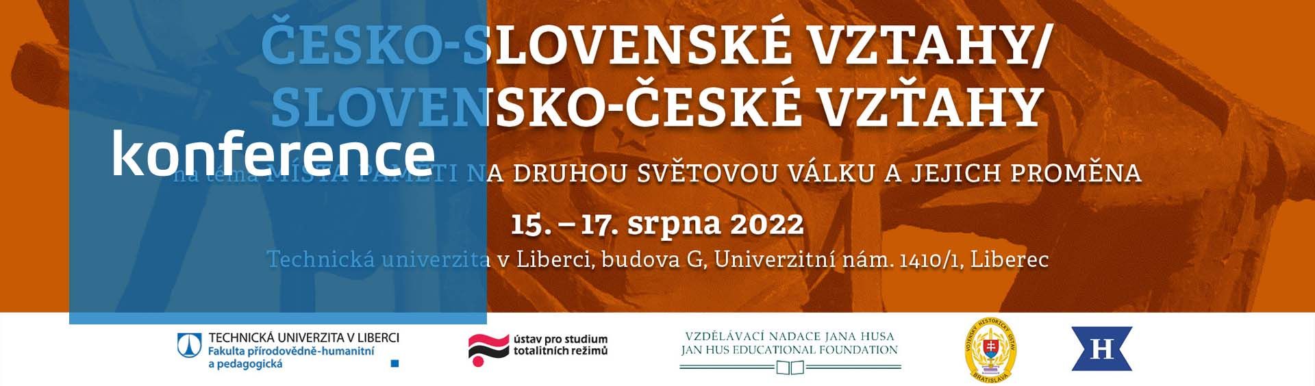 Katedra historie FP TU v Liberci spolu se svými spolupořadateli srdečně zve nejen učitele dějepisu, občanské výchovy, historiky a archiváře na XXXI. ročník semináře Česko-slovenské vztahy/Slovensko-české vzťahy, který se bude na naší fakultě konat ve dnech 15. – 17. 8. 2022. Letošní podtitul zní „Místa paměti na druhou světovou válku a jejich proměna" .