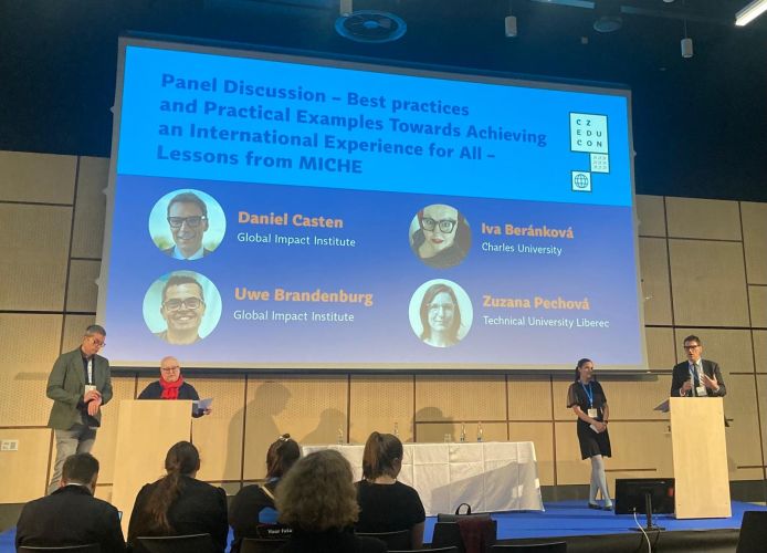 Zuzana Pechová, proděkanka FP TUL pro vnější vztahy, se spolu s dalšími pozvanými hosty v panelové diskuzi zamýšlela nad výsledky Monitoringu internacionalizace českého vysokého školství (MICHE) a představila způsob, jakým naše fakulta poskytuje studujícím i zaměstnancům příležitosti k získání mezinárodních zkušeností.