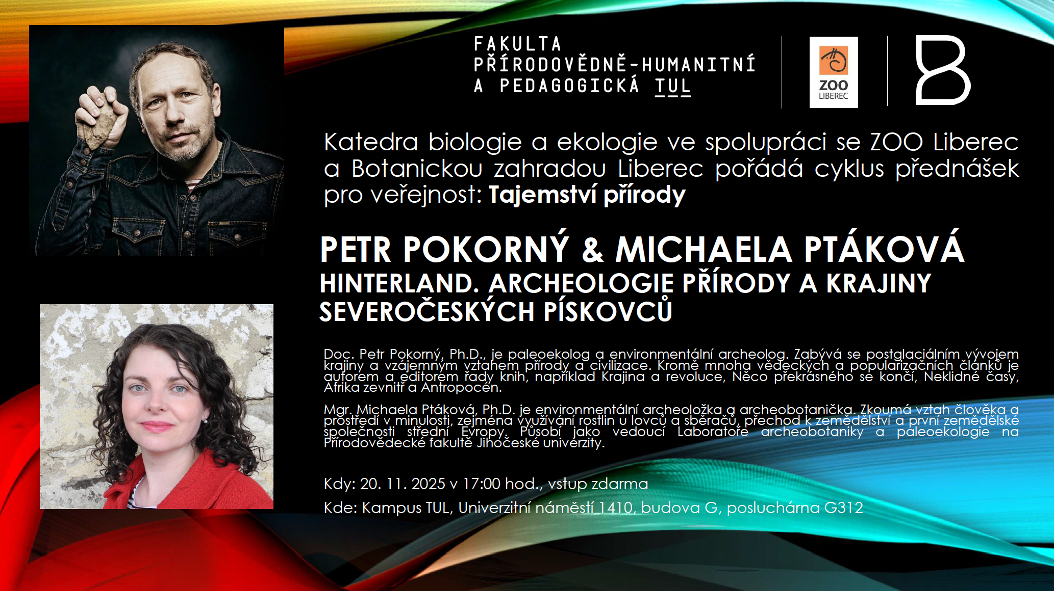 Katedra biologie a ekologie (KBE) vás zve na další zajímavou přednášku ze svého cyklu Tajemství přírody, který pořádá ve spolupráci se ZOO Liberec a Botanickou zahradou Liberec. Přednáška na pomezí botaniky a archeologie Hinterland. Archeologie přírody a krajiny severočeských pískovců se uskuteční 20. listopadu 2025 v 17 hodin v budově G (posluchárna G312).