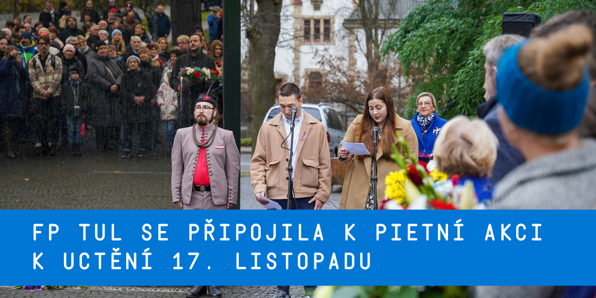 zveme vás na Slavnostní setkání akademické obce FP TUL, které se uskuteční 18. listopadu 2025 v 16 hodin v posluchárně P100 (budova P). Na akci společně přivítáme nové členy akademické obce a v následné diskuzi, v níž uvítáme vaše názory a podněty, se zaměříme na témata wellbeingu, studentské aktivity, AI a udržitelnosti.
